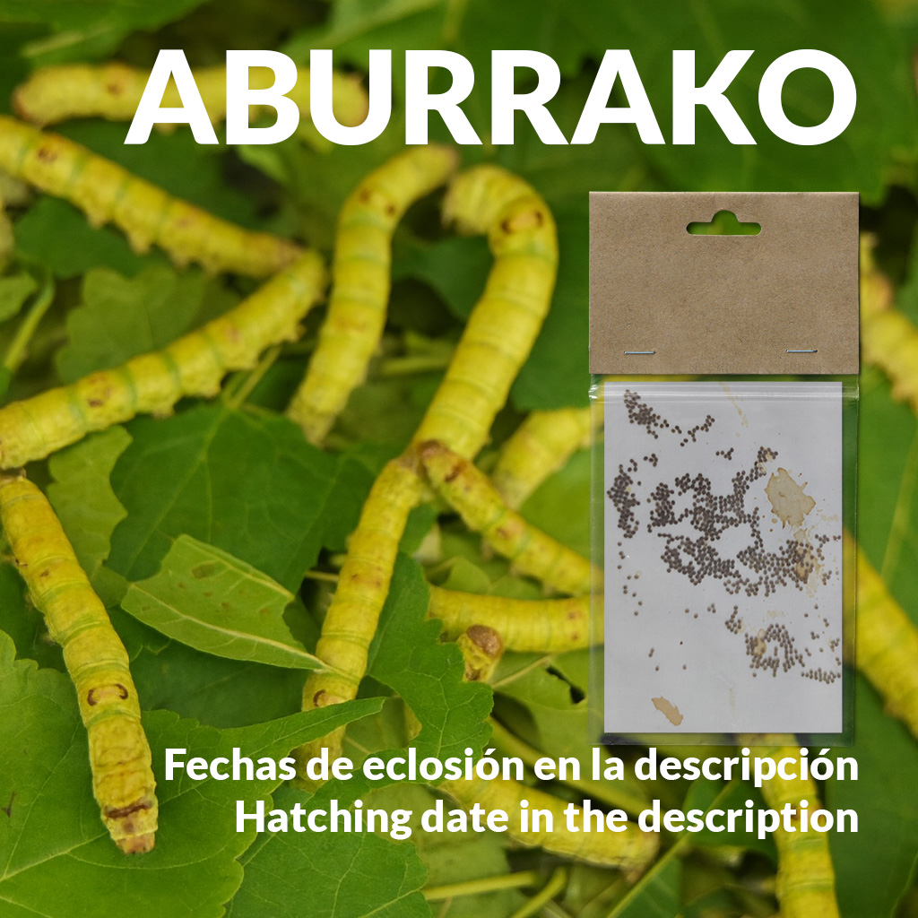 Huevos de gusanos de seda Aburrako, disponibles todo el año. Perfectos para proyectos educativos o familiares donde se pueda observar su ciclo vital completo. Incluyen instrucciones y envíos a todo el mundo.